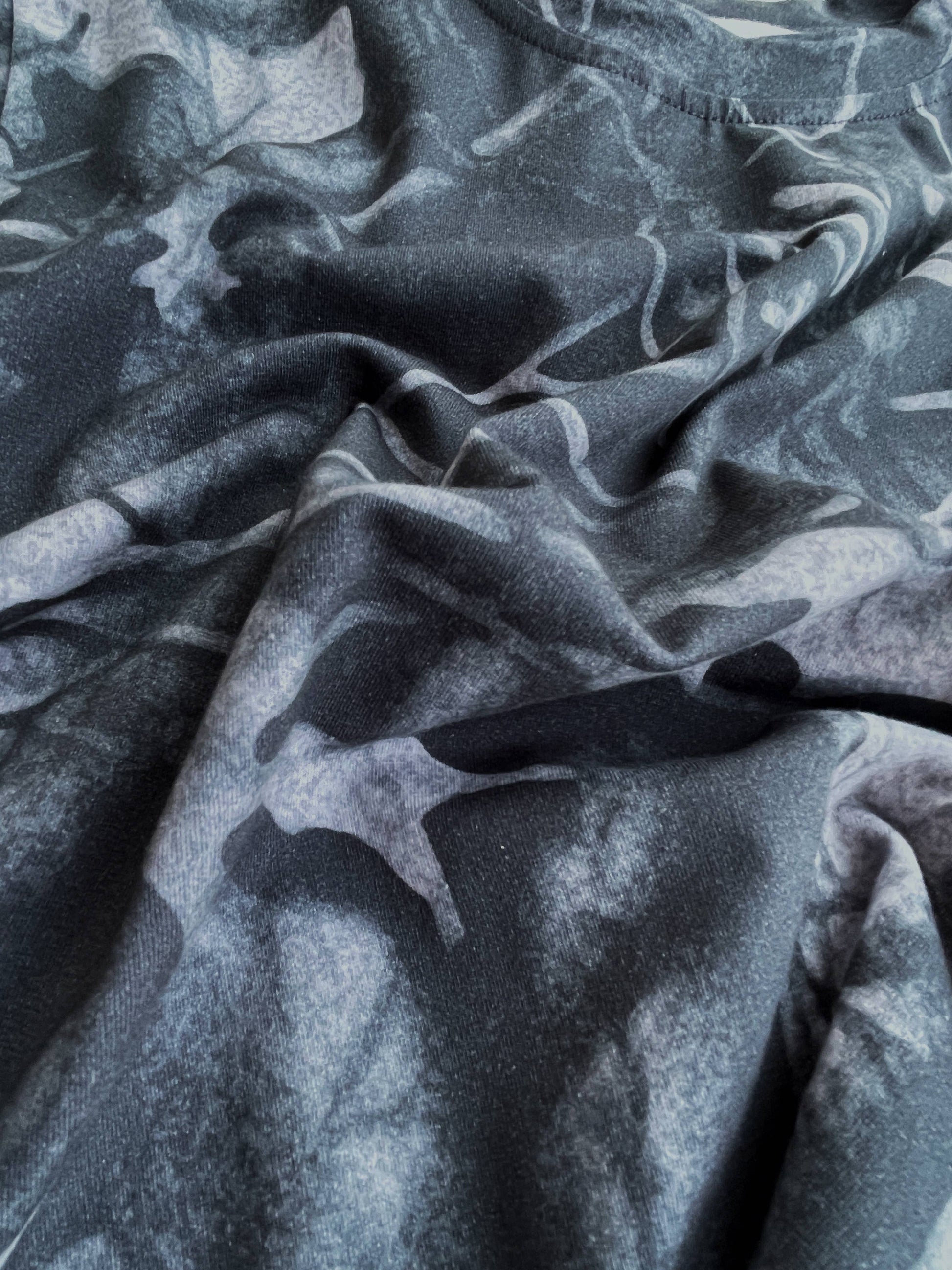 With a grayscale all-over print and a washed down edge, this tee is full attitude. It features a slightly boxy fit and a super soft and stretchy jersey fabric. Fit: True to Size Fabric: 95% Cotton/ 5% Spandex