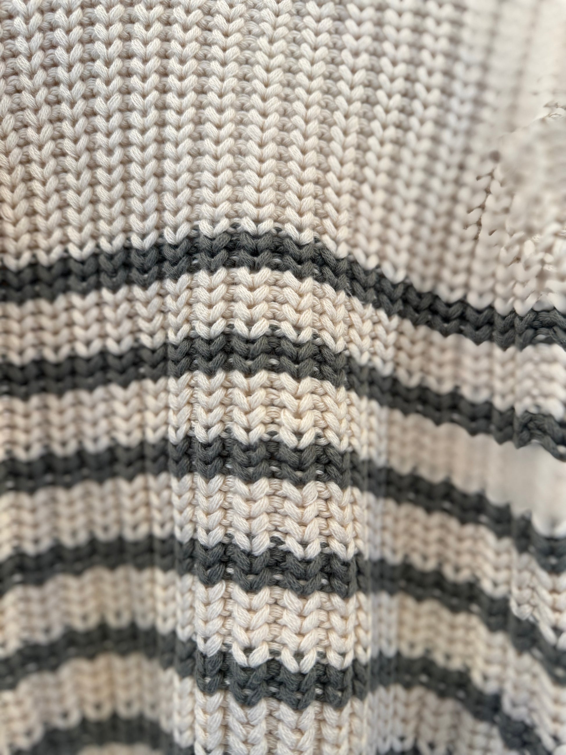 Cozy and chunky, our Rex Sweater features ribbing at the neck, cuffs, and hem, plus a back button placket for easy changing.